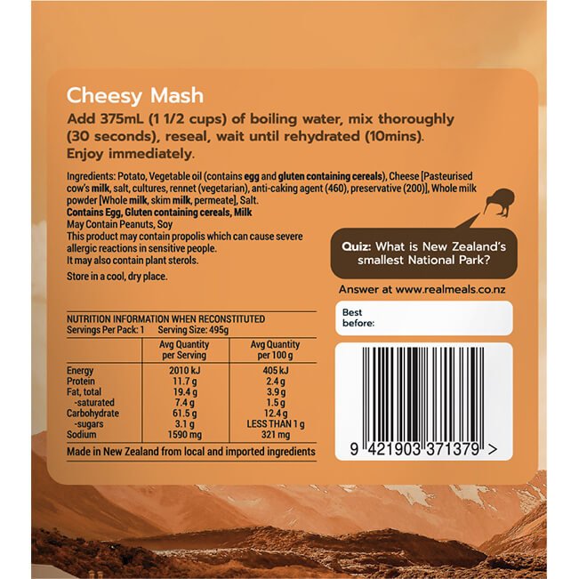 Real Meals - Cheesy Mash - Food-Freeze Dried : Living Simply Auckland Ltd - Real Meals 26