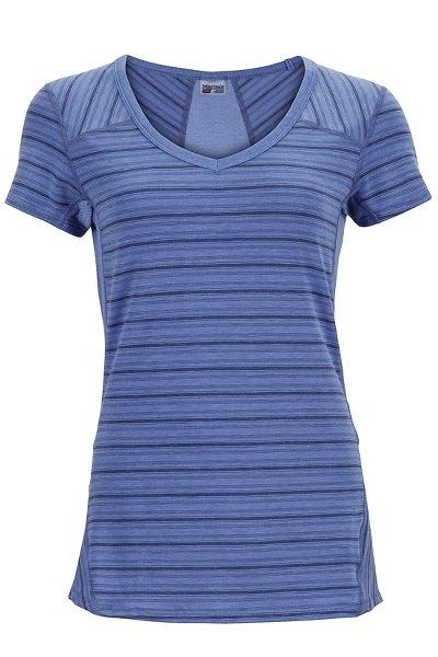 Engineered with an ingenious breathable, odor-controlling fabric blend and mesh paneling in the back, the Julia knows how to keep it cool. Made with flat-locked seams, the style of the stretchy Julia is in the details: V-neck, mini stripes.