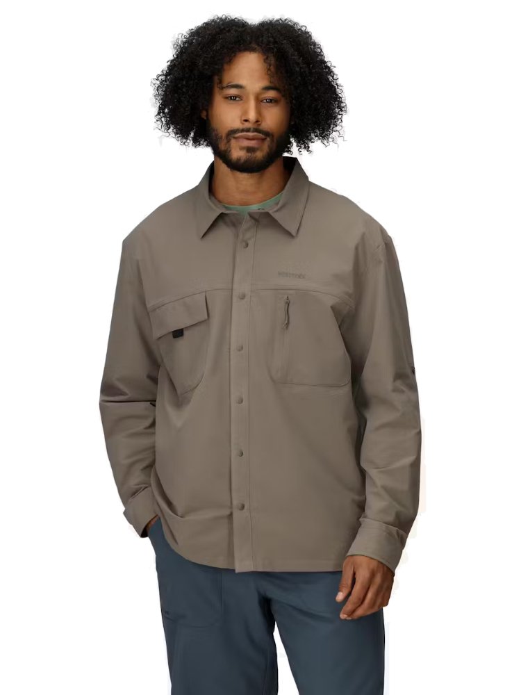 This easy, breezy UPF 40 button-up offers layer-friendly comfort for long days under blazing rays. AirExchange performance fabric is breathable, quick-drying, and sweat-wicking, keeping you in your comfort zone—whether you're kicking back by the lake or pushing into new terrain. When the sun pops out, rely on UPF 40 protection to shield you from harmful UV rays—then snap up the pop-up collar for extra protection on your neck. Multi-day backpacking trip, all-day fishing excursion, or weekend campout? This overshirt is good to go. Dropped shoulders and abrasion-resistant seams keep you comfy, agile, and chafe-free under the weight of your pack or racking sling. Roll-up sleeves let you cover up or cool down as temps change, while two chest pockets—one zip-secure, one VELCRO®—let you stash a light snack for the trail or your phone for that summit selfie.