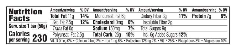 NUT BUTTER BLEND* (HAZELNUT BUTTER*, CASHEW BUTTER*, ALMOND BUTTER*), OAT FLOUR*, ROLLED OATS*, PEA PROTEIN*, BROWN RICE SYRUP*, DATE PASTE*, HIGH OLEIC SUNFLOWER OIL*, TAPIOCA SYRUP*, CANE SYRUP*, CANE SUGAR*, RICE STARCH*, PALM OIL*, RICE FLOUR*, ALKALIZED COCOA*, VEGETABLE GLYCERIN, NATURAL FLAVORS, SEA SALT, UNSWEETENED CHOCOLATE*, COCONUT*, COCOA*, SUNFLOWER LECITHIN, MIXED TOCOPHEROLS (ANTIOXIDANT).