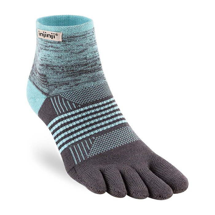 Engineered and cushioned for women who run far and hike fast on shifting, uneven trails, this midweight toesock delivers comfort and protection with agility and support. Snug, but not binding, the double-cuffed mini-crew height seals out dirt, sand, and debris. COOLMAX® EcoMade wicks away moisture, nylon adds durability, and the narrower profile with increased stretch is specifically designed to fit women’s feet and toes. Arch support is built in, mesh at the top improves breathability, and our unique design wraps fabric around each toe to minimise blisters, allow a natural splay, and more effectively wick moisture.